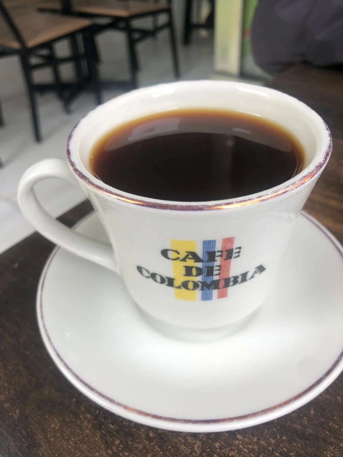 Enjoying coffee at the bar in Filandia, Department of Quindio, Colombia.