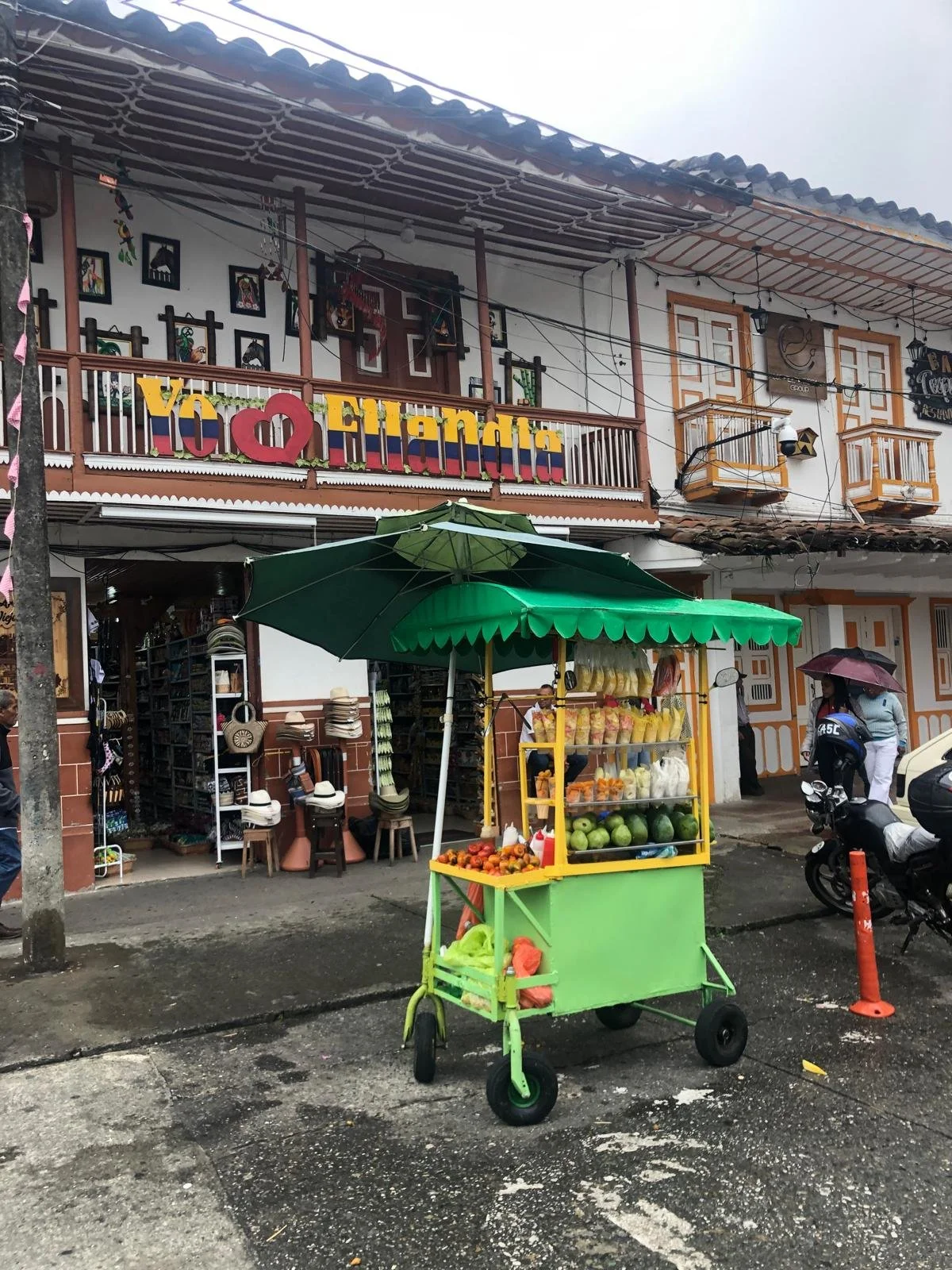 Fruit stand in the central plaza of Filandia, Department of Quindio, Colombia.