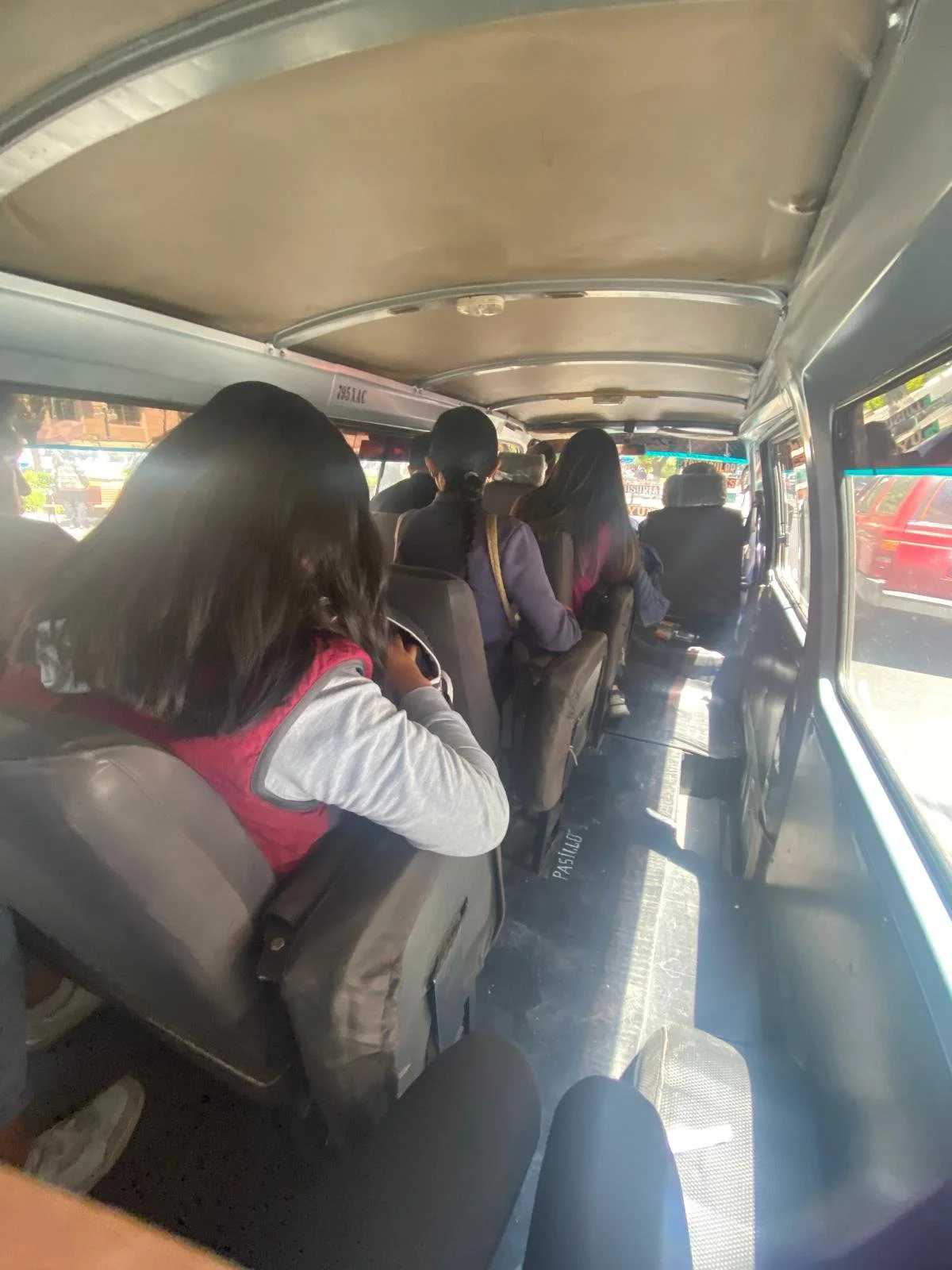 Riding the mini van with local Bolivians and indigenous in La Paz, Bolivia.