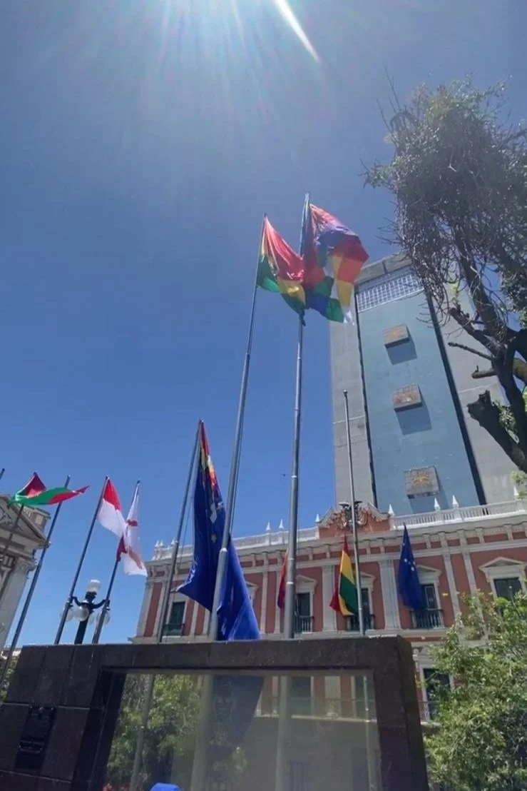 Traditional Bolivian flags in Plaza Murillo, La Paz, Bolivia.