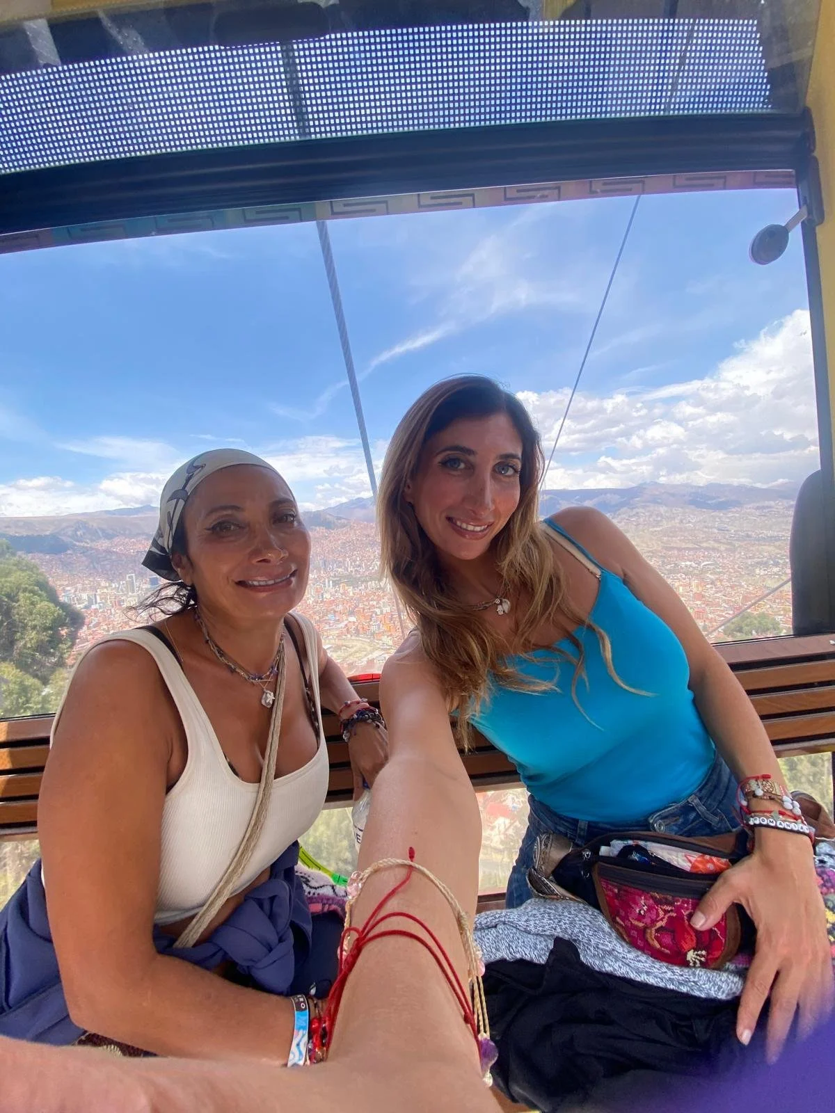 Enjoying the sceneic ride on the ‘teleferico’ cable car ride in La Paz, Bolivia.