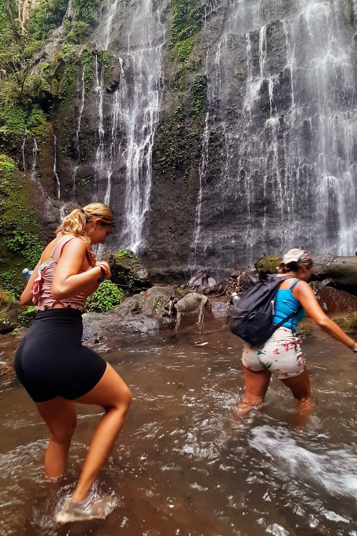 Carmit and Noy hiking through one of the 7 waterfalls in knee high water, in Juayua, Ruta de Flores region of El Salvador. Truly an adventure!